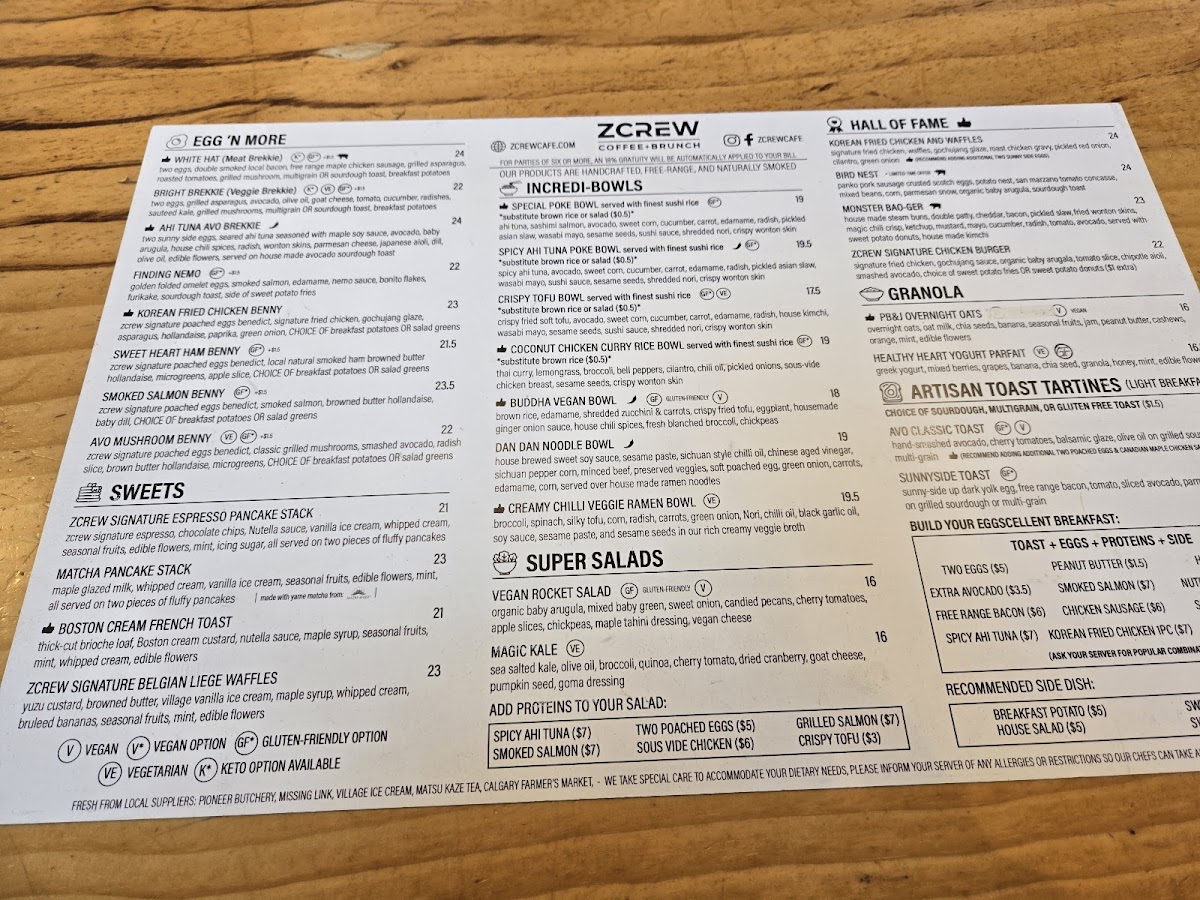 Welcome to ZCREW Cafe, a vibrant brunch and breakfast haven located at 401 11 Ave SE, Calgary. Dive into a menu that beautifully marries innovation with comfort, featuring dishes like the Boston Cream French Toast, a lavish creation with thick-cut brioche, custard, and fresh berries, priced at CA$24.15. Another must-try is the Korean Fried Chicken and Waffles, praised for its perfect harmony of flavors.